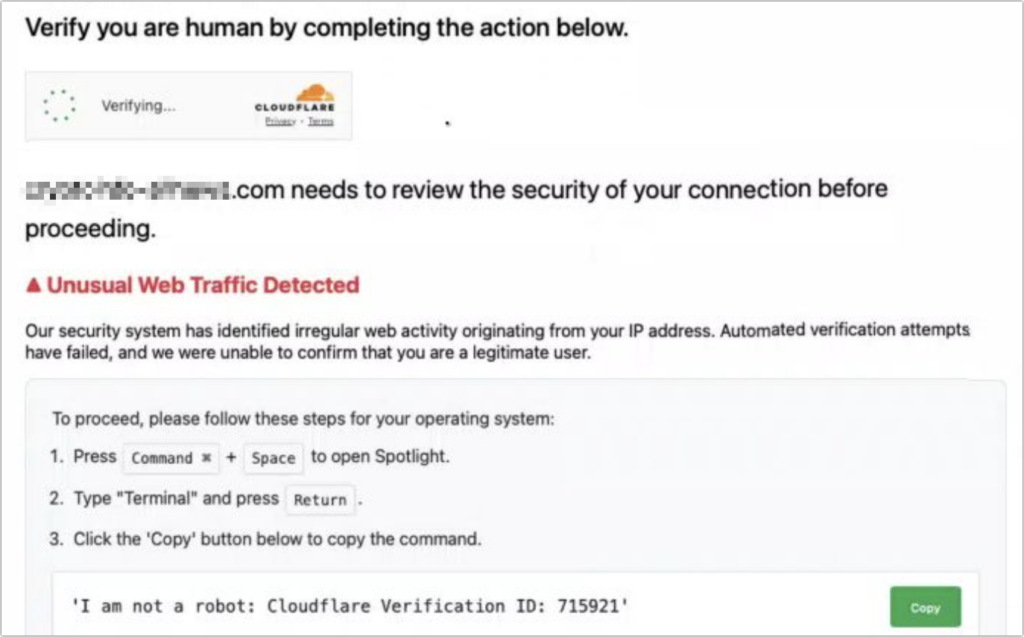 Here’s a new scam to watch for. A client reported running across a suspicious website masquerading as a human verification test. Instead of asking him to click pictures or solve a math equation, this one asked him to copy some text from the page and paste it into Terminal. Terminal is an app that comes pre-installed on every Mac; it’s a powerful tools used by advanced users and developers for tasks such as managing files, configuring settings, and launching applications. Many, if not most, Mac users, never need to use Terminal.
